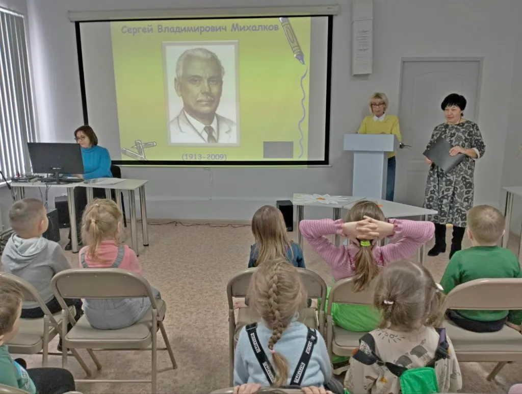 В начале встречи ребята узнали, что за долгую литературную жизнь С. В. Михалков был награждён множеством премий, орденов и медалей, но самой почётной медалью для писателя стал «Орден улыбки». Также дети узнали, что С. В. Михалков является автором текста Государственного гимна нашей страны. Затем юные книголюбы сели на волшебный трамвайчик и под мелодию из «Песенки друзей» отправились в путешествие по страницам книг Сергея Михалкова. Ребята ответили на вопросы викторины по поэме «Дядя Стёпа», проявили смекалку в играх «Одна рифма», «Доскажи словечко», «Знаете ли вы?» и «Ромашка». Завершилась встреча просмотром мультфильма «Про Фому».