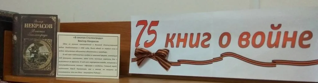 В рамках Книжной эстафеты "75 книг о войне" библиотека-филиал №1 представляет книгу Виктора Некрасова "В окопах Сталинграда". Книга экспонируется в читальном зале библиотеки.