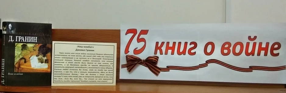 В рамках Книжной эстафеты "75 книг о войне" библиотека-филиал №1 представляет книгу Даниила Гранина "Наш комбат". Книга экспонируется в читальном зале библиотеки.