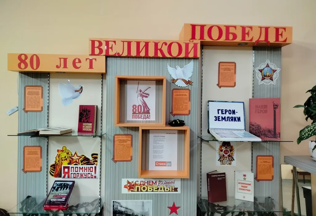 Тематическая выставка-стенд «80 лет Великой Победе» открывает серию юбилейных мероприятий Центральной библиотеки им. Р. С. Иванченко, посвященных знаменательному историческому событию в жизни нашей Родины.