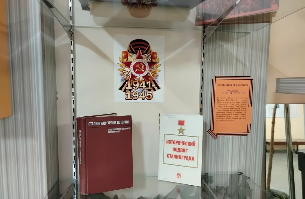 Выставку дополняет официальный логотип празднования 80-летия победы в ВОВ, стихотворение «Юбилей Победы» ленинградского поэта Виталия Летушева («блокадного ребенка»), фотоальбом «Герои-земляки», «голуби мира», несущие георгиевскую ленту, изображения военных орденов, воина-освободителя с ребенком на руках, знаменитые фотокадры с парада Победы и взятия Рейхстага, а также военная атрибутика (фляга, армейский котелок и маскировочная сетка).