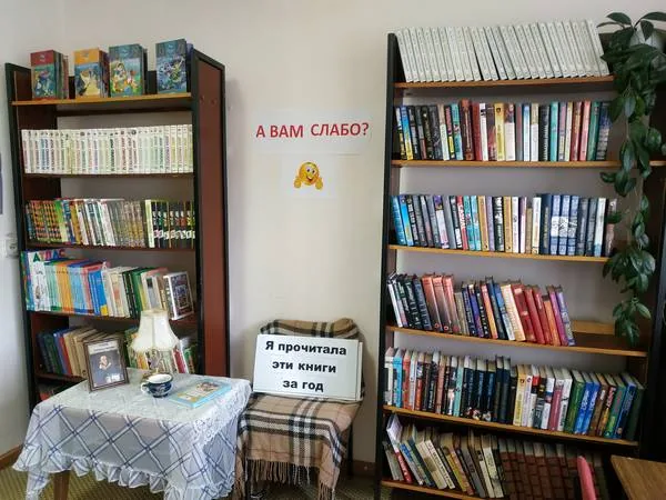 В библиотеке-филиале № 5 создана фотозона «А вам, слабо?» Это небольшой уютный уголок для наших пользователей, где бы они могли отдохнуть, почитать книги и сделать фото. На одном из стеллажей подобрана литература для детей, а второй стеллаж выделен для взрослых пользователей. Литература подобрана по различным темам, чтобы пользователи могли выбрать книгу на любую тему и расширить круг своего чтения, что является целью библиотеки. А также, чтобы пользователи задумались, а сколько же можно прочесть книг за определённый период и смогут ли они это сделать. Фотографируясь в нашей фотозоне, читатели показывают фотографии своим друзьям и знакомым и рекламируют библиотеку. Первая реакция читателей удивление и восторг. Фотозона действует до конца мая. Приглашаем всех желающих.
