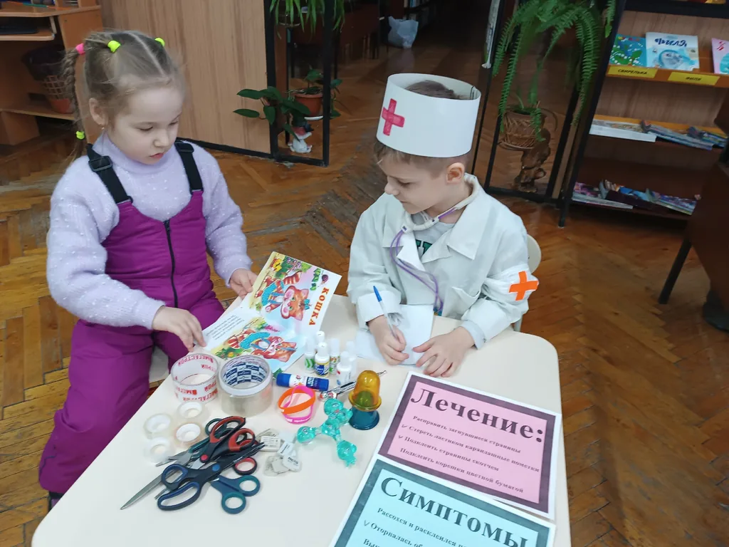 29 января в библиотеке - филиале №4 для детей подготовительной группы «Подсолнушек» МБДОУ «Детский сад №12 «Ромашка» г. Йошкар-Олы» была проведена акция одного дня «Будь здорова, книжка!». Ребята отправились в увлекательное путешествие по библиотечному миру, узнав, почему важно следить за состоянием книг и журналов, встретились с врачом-книголюбом, который объяснил, каким образом «лечатся» поврежденные страницы и корешки книг. Каждый ребенок попробовал себя в роли доктора, самостоятельно восстанавливая странички и переплет своего любимого издания. В конце занятия все участники выразили радость и уверенность от того, что смогли вернуть здоровье и бережное отношение к каждой книге.