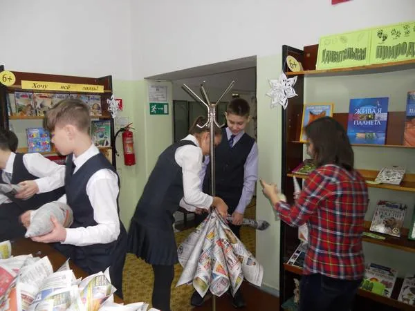 Ёлка один из неизменных атрибутов Нового года. А сколько интересных рассказов и историй написано про неё. Вот мы и решили создать ёлку, которая радовала бы наших посетителей. Но из чего, же её сделать? Конечно из газет. Идея создания экологичной и необычной ёлки очень понравилась нашим посетителям. Ребята активно и весело принялись за её изготовление. Дружная работа привела к великолепному результату. Красавица-Ёлка заняла своё почётное место в библиотеке.