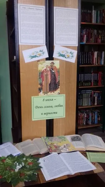 8 июля во взрослом отделе библотеки-филиала №28 в течение дня проходила акция, посвященная « Дню семьи, любви и верности». Его начали праздновать совсем недавно – в 2008 году. Первой читательнице был подарен букет ромашек, который ее очень растрогал и порадовал. Вниманию читателей была представлена выставка книг и периодических изданий. Библиотекари знакомили читателей с историей и традицией празднования «Дня семьи, любви и верности», зачитывали стихи. Семейные пары с удовольствием позировали на фоне выставки, ведь они получат в подарок от филиала фотографии, которые украсят семейный альбом. В этот день, придя в библиотеку, читатели оживлялись, начинали улыбаться, услышав поздравления и пожелания.
