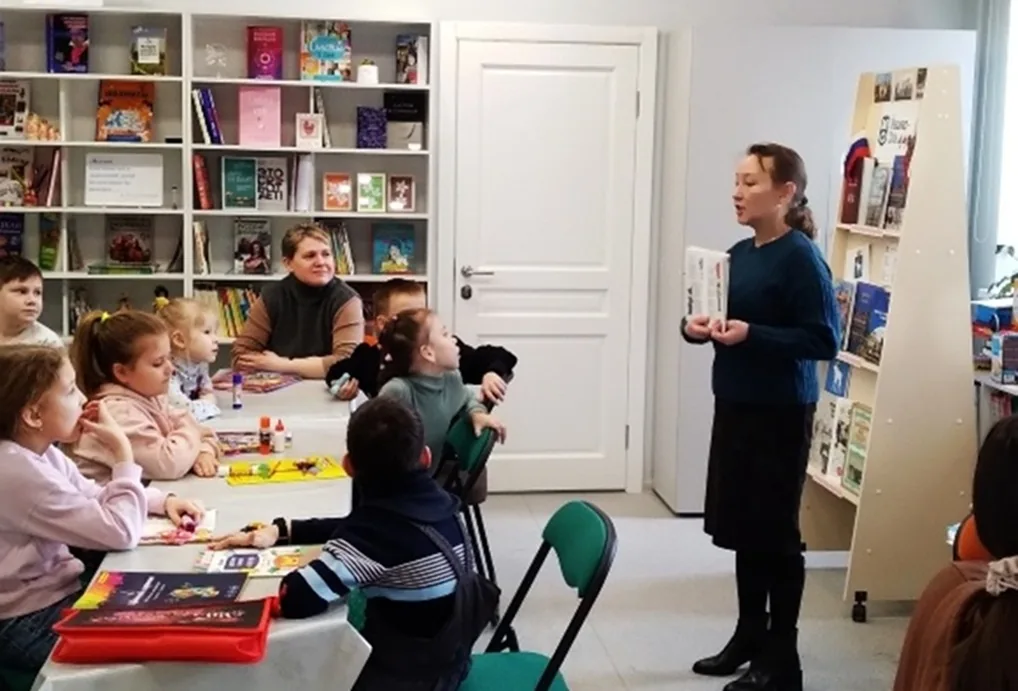 Дети пришли в библиотеку вместе с родителями и бабушками.