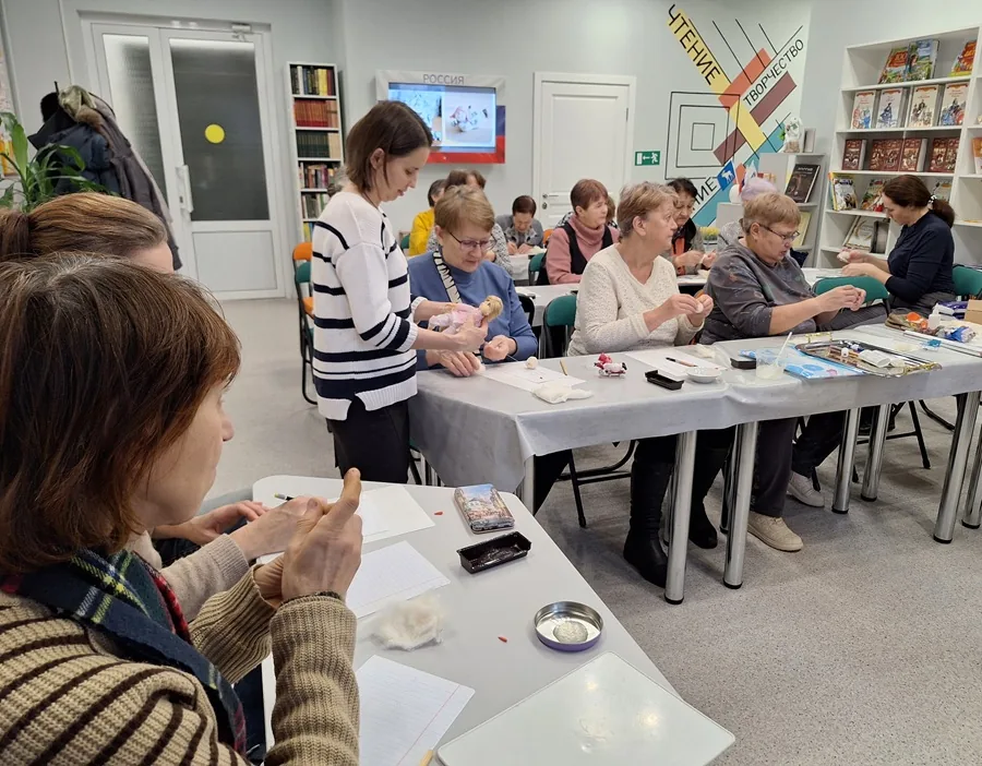 Хочется, чтобы в каждом доме появилось что- то новое, хранящее тепло рук и доброту сердца, это может быть новогодняя игрушка, изготовленная своими руками. Для этого мы пригласили мастера по изготовлению игрушки из ваты Зеленко З.Н. Зал творческого развития едва вместил всех желающих научиться этому искусству.