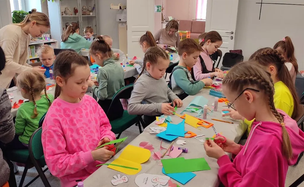 Под руководством библиотекарей участники арт-мастерской изготовили праздничную объемную открытку из цветной бумаги. Ребята вложили в неё мастерство, любовь к родному человеку. Дети не только вырезали, клеили, но и вели беседу о самых дорогих, родных и любимых мамах. Ребятам рассказали об истории Международного женского дня, особенностях его празднования в разных странах мира, познакомили с книжной выставкой «Весенний праздник – 8 марта». Дети слушали стихи любимых поэтов, с удовольствием отгадывали загадки, отвечали на вопросы викторины «Сказочные мамы».