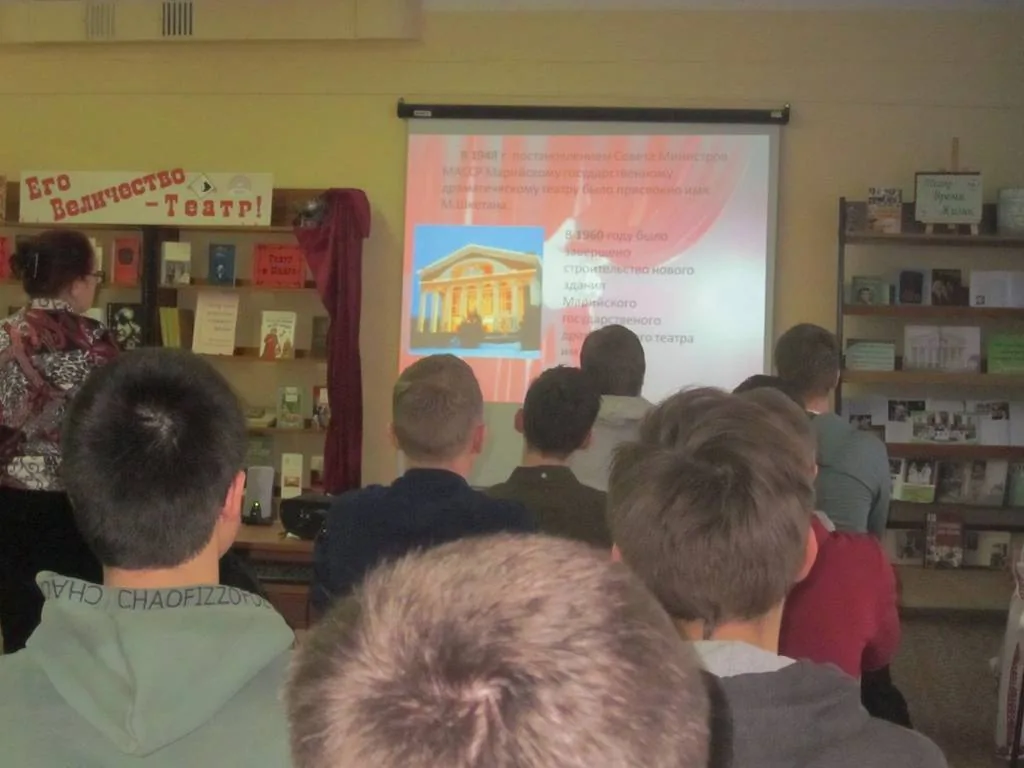 Встречу предварил обзор книжной выставки «Театр. Время. Жизнь» и презентация, знакомящая аудиторию с историей театра, а также открытием юбилейного театрального сезона в театре им. М. Шкетана.Алина Николаевна познакомила молодых людей со своей творческой деятельностью: рассказала об учебе в Москве, любимых ролях, сыгранных на сцене театра, закулисной жизни и репетициях, о работе на телевидении и гастролях по всей России. Она спела несколько песен из музыкальной комедии «Салика», мюзикла «Юмынудер» («Дочь бога»). Всем понравился музыкальный клип с песней «Аваем» («Мама»), в котором кроме Алины Егошиной снимались ее мама и маленькая дочь. Также в ходе мероприятия прозвучали стихи марийских поэтов в переводе Г. Пирогова.Аудитория проявила большой интерес к творчеству Алины Николаевны, было задано множество вопросов. А когда зашел разговор о современной музыке, один из студентов зачитал реп собственного сочинения.
