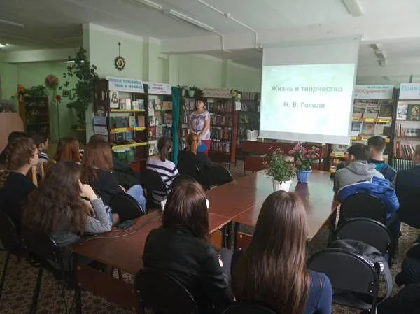 25 апреля для учеников 9 «В» класса СОШ №21 сотрудники библиотеки-филиала № 12 провели беседу с видеопоказом «По следам Николая Васильевича Гоголя», посвященную 210-летию со дня рождения писателя.