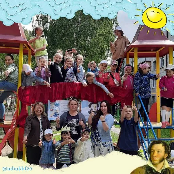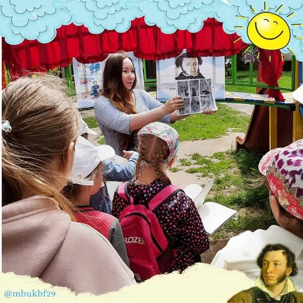 В преддверии Пушкинского дня России, 3 и 4 июня в рамках программы летнего чтения «Книжная улыбка лета» и городского проекта "Летом! Вместе! Всем двором!" для воспитанников детских клубов "Факел" и "Радуга" и детей близлежащих дворов (ул. Данилина, 71 и ул. Советская, 89) были проведены мероприятия в рамках библиотечной акции «Библио-дворик "Библиотека без границ!"»