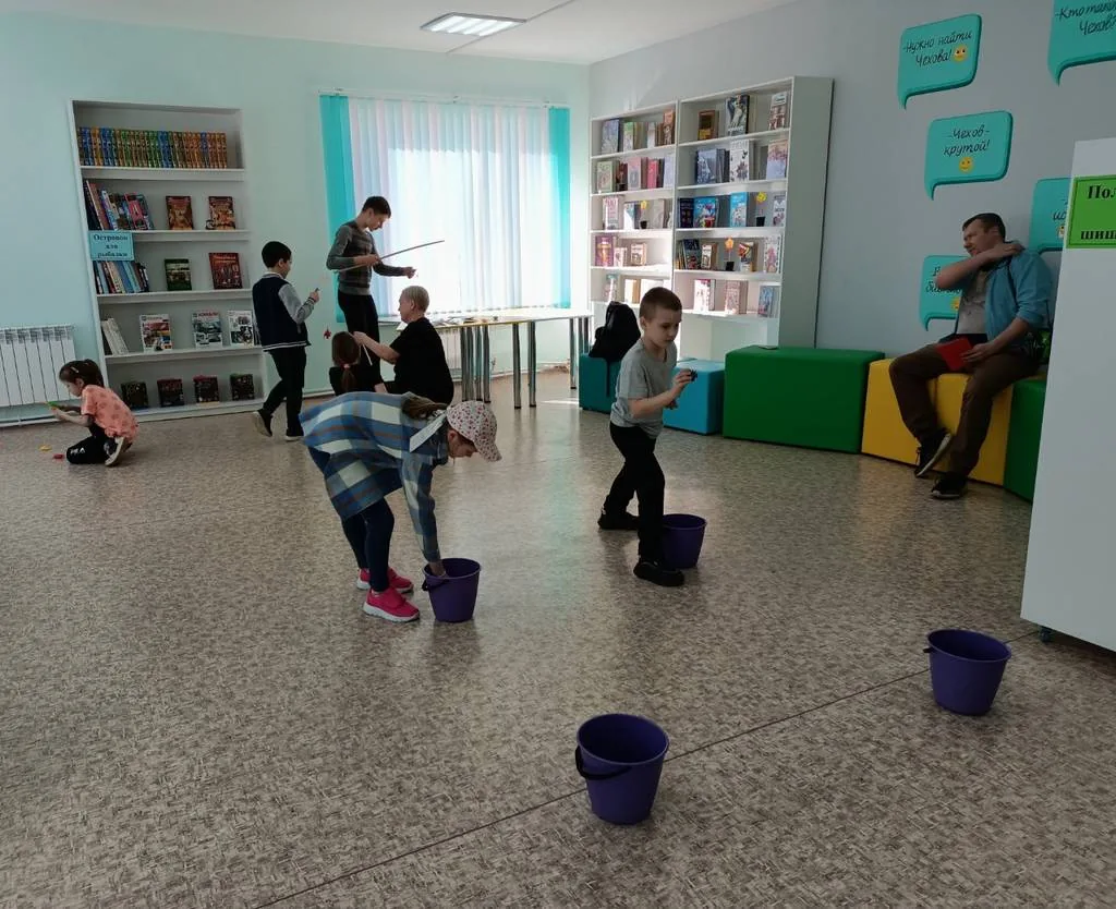 Дети очень любят подвигаться, побегать и порезвиться. Поэтому сотрудники библиотеки-филиала №8 приготовили для них разнообразные подвижные игры. Ребята с удовольствием ловили удочкой рыбку, упражнялись в меткости, бросали шишки в ведро, собирали кофейные зёрнышки на скорость и др.