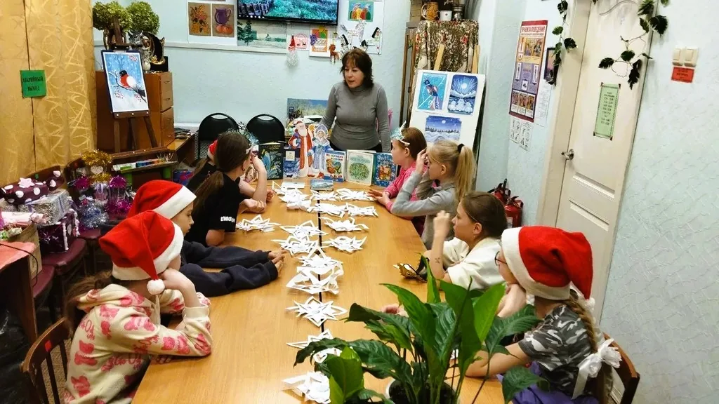 Предновогоднее мероприятие в кружке «Книжное творчество и фантазия» было познавательным и очень весёлым. Воспитанники детского клуба «Космос» посетили сказочную библиотеку Деда Мороза. Библиотекарь предложила ребятам погрузиться в мир зимних сказок и рождественских повестей, которые подарят праздничное настроение в канун нового года.