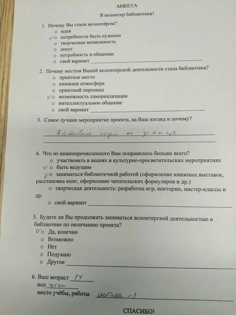 Завершилась реализация проекта библиотеки-филиала №7 г. Йошкар-Олы «Молодежная инициатива: волонтёры в библиотеке», ставшего победителем конкурса на Грант Главы Республики Марий Эл в области добровольчества (волонтёрства) в 2019-2020 году.