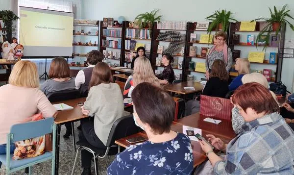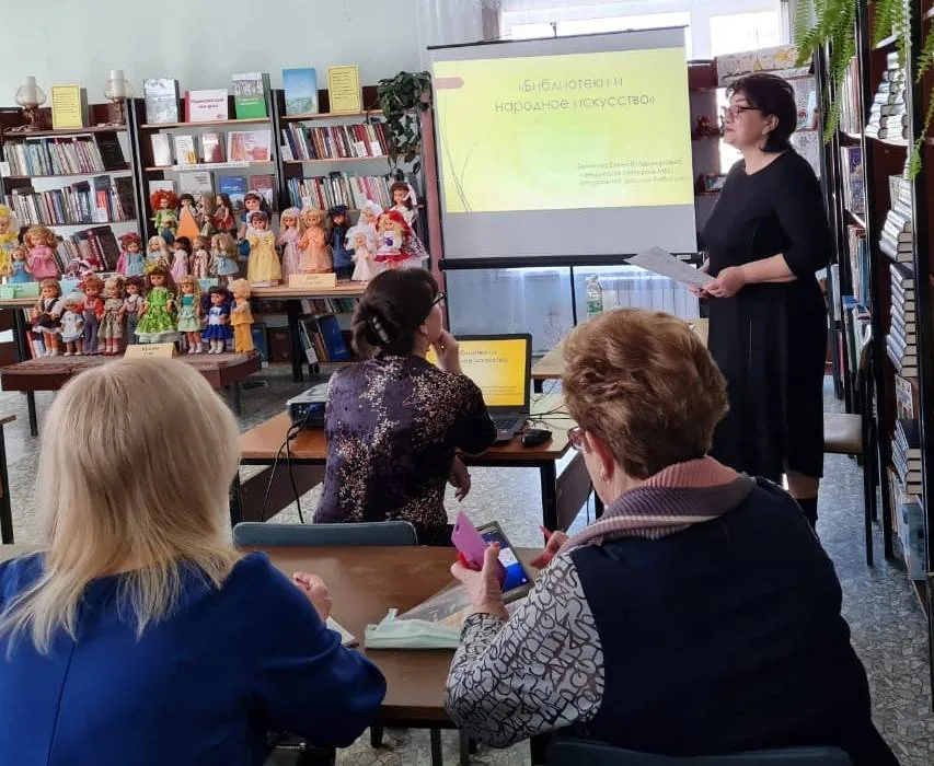 Для сотрудников детских библиотек была подготовлена презентация, в которой были рекомендованы названия книжных выставок, форм мероприятий по народному искусству, подготовлен сценарный материал по журналу «Читаем, учимся, играем», показаны творческие работы, сделанные руками детей.