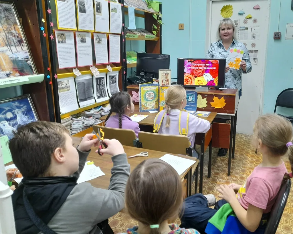 20 ноября, в преддверии Дня матери сотрудники библиотеки-филиала №29 для учащихся 1 класса СОШ №7 "Продленка 12" провели час доброты с мастер-классом «Прекрасен мир любовью материнской». А также принимает участие в сетевой акции "Скажи добрые слова о маме". Акция приурочена ко дню матери в РФ. Организатором акции является библиотека-филиал №4 МБУ "ЛЦСБ для детей". Вначале мероприятия библиотекарь провела экскурсию по библиотеке. Некоторые ребята пришли впервые и поэтому им очень интересно было узнать, какие книжки живут на полочках. С помощью электронной презентации Секретарева Елена Юрьевна познакомила школьников с историей праздника – Днём матери: как, когда и почему возник этот праздник, отмечается ли он в других странах, что пожелать и что подарить в этот день мамам. Библиотекарь познакомила ребят с подборкой книг о маме, прочитала стихи русских и советских писателей, посвящённые мамам... Дети приняли участие в викторине '"Моя милая мама".