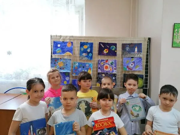 Дети активно участвовали в космической викторине, дружно отвечая на вопросы о первом полёте космонавта, какие животные летали в космос, какого цвета скафандр, название ракеты, время полёта, как питались космонавты, место приземления Ю. А. Гагарина. С интересом знакомились с книгами по теме, были прочитаны стихи о космосе, отгадывали загадки. Приятным удивлением было то, что к мероприятию ребятами заранее были подготовлены замечательные рисунки о космосе .