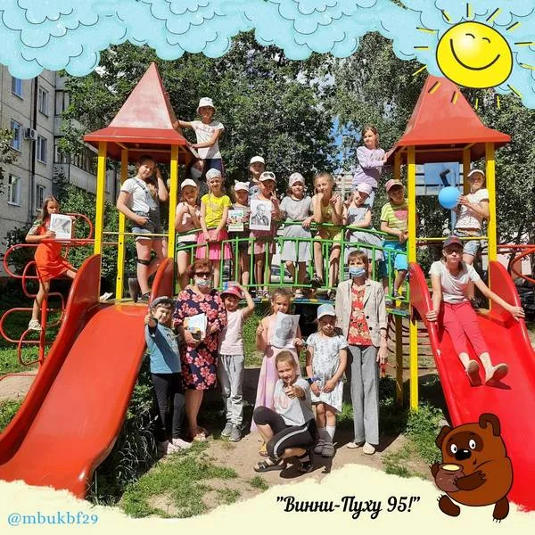 17 июня в рамках программы летнего чтения «Книжная улыбка лета» и городского проекта «Летом! Вместе! Всем двором!» для воспитанников лагеря с дневным пребыванием «Планета детства» детского клуба «Факел» был проведён час интересных сообщений «Винни-Пуху 95!»