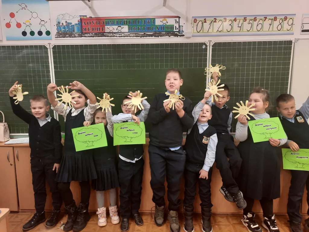 13 ноября для детей группы продлённого дня школы № 10 был проведён час милосердия «Формула добра». Мероприятие было приурочено к Всемирному дню доброты. Праздник возник в 1998 году в Токио. Символ праздника – открытое сердце. Также в День доброты принято дарить цветы встречным людям и знакомым. На мероприятии ребята узнали, что обозначает слово «доброта». А далее вместе с детьми создали свой «сад доброты». В саду «посадили» волшебные деревья: «Дерево добрых слов». А для этого дети вспомнили, какие добрые слова они знают. Чтобы посадить «дерево добрых мам», дети рассказали о своих любимых мамах. Сажая «Дерево мудрости», вспомнили пословицы о добре и отгадывали загадки. А сажая «Дерево добрых поступков», ребята рассказали, как они помогают своим родным и близким. А затем провели с ребятами мастер-класс «Солнышко добра», где дети из бумаги сделали солнышко, где на лучах были написаны добрые слова, и это солнышки будут освещать «сад доброты».
