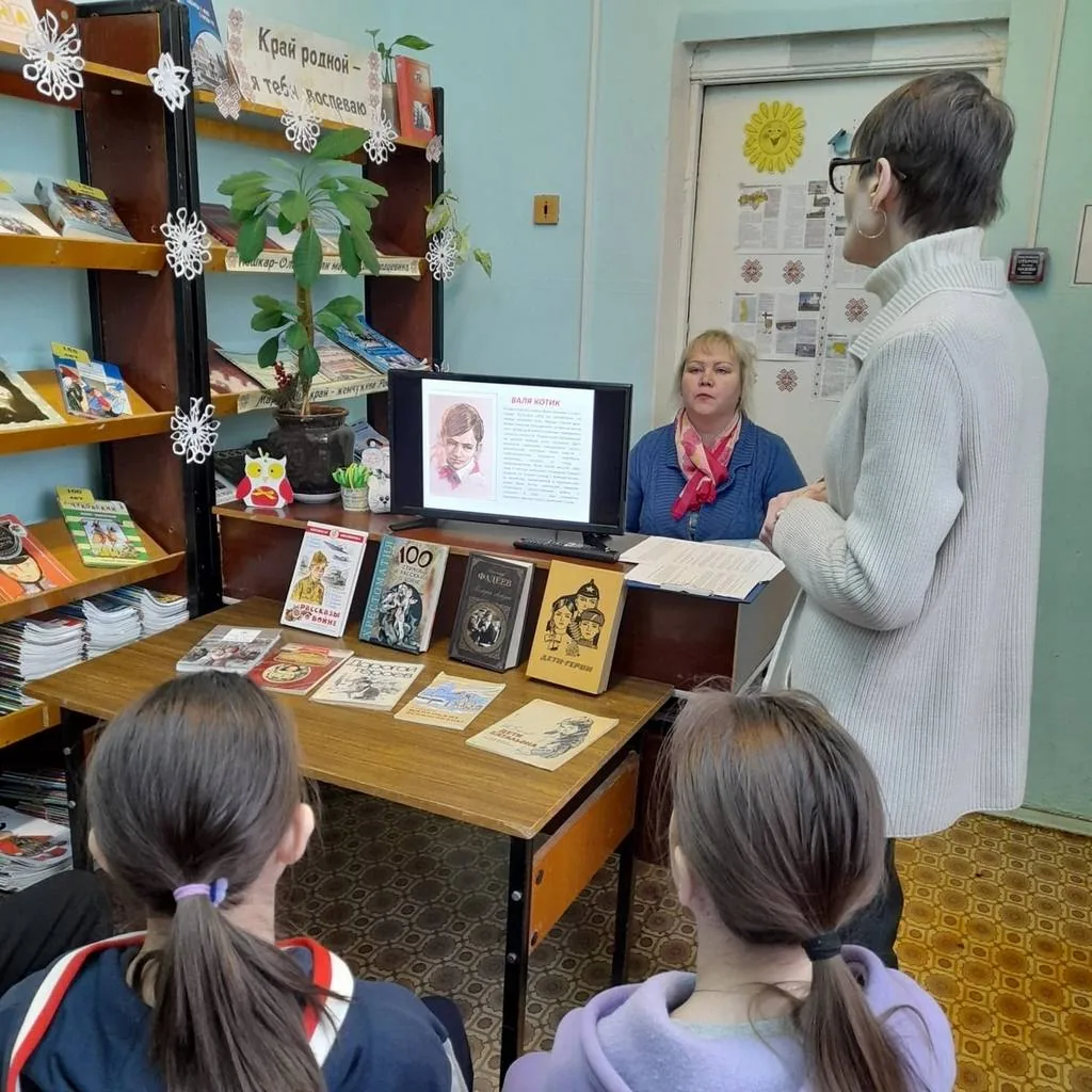 Библиотекари рассказали ребятам о юных пионерах-героях Великой Отечественной войны, такими героями-антифашистами для нашей страны были: Володя Дубинин, Леня Голиков, Зина Портнова и другие. До войны это были самые обыкновенные мальчики и девочки. Учились, помогали старшим, бегали, играли, а в суровые дни сорок первого года, рядом со взрослыми помогали раненным, воевали в партизанских отрядах.