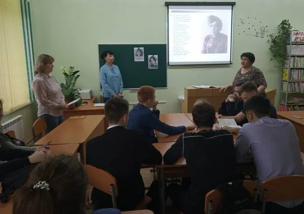 В ходе мероприятия библиотекари зачитывали стихотворения, присоединилась к ним и преподаватель – Журавлева Валентина Игоревна, и по памяти рассказала произведение «Зинка», одно из самых трогательных. Ребята узнали, что Зинка – это не вымышленный персонаж, а реально существовавшая Зинаида Самсонова – девушка, о которой на фронте ходили легенды.