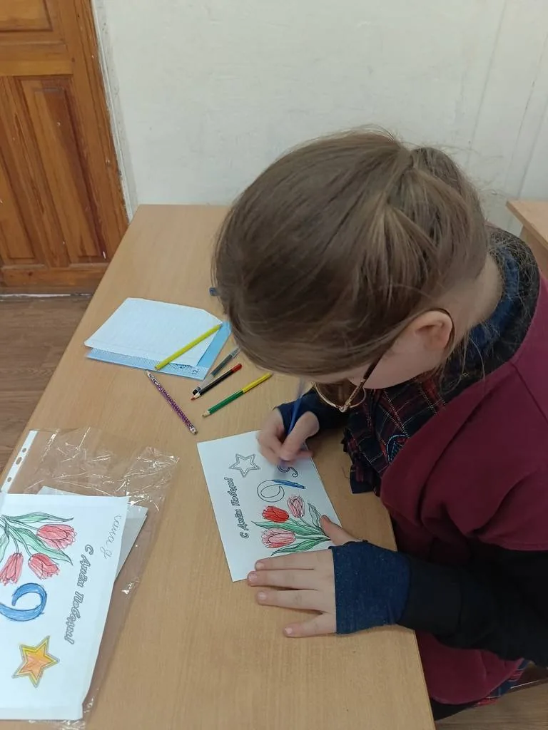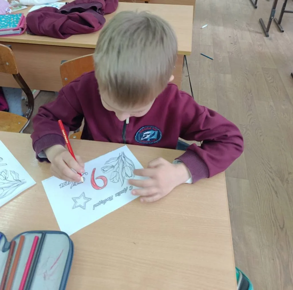 В конце мероприятия учащиеся сделали яркие открытки ко Дню Победы.