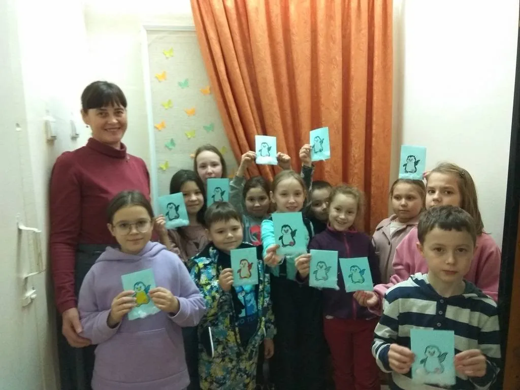 На занятии детям рассказали информацию о пингвинах, место их обитания, интересные факты о них.