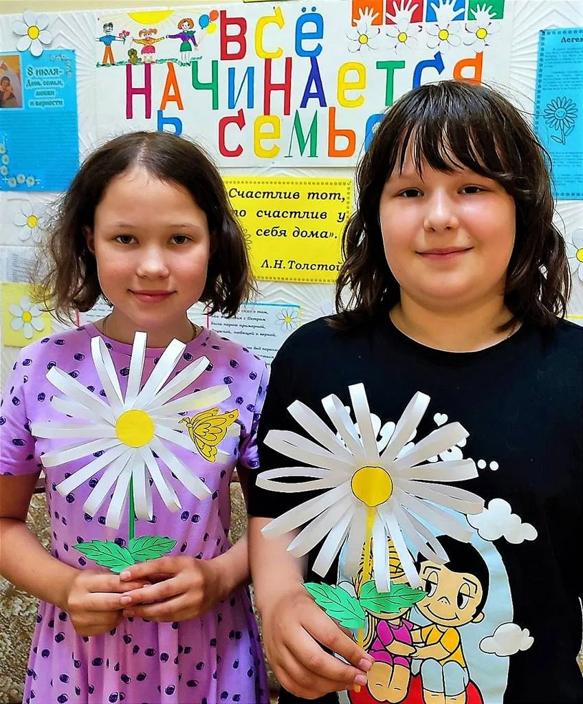 Детям рассказали об истории происхождения этого замечательного праздника, об исторических персонажах – Петре и Февронии, почему ромашка – символ праздника. Ребята ответили на вопросы викторины, поучаствовали в конкурсах «Семь Я», «Народная мудрость гласит», разгадали много загадок о семье, а также погрузились в атмосферу творчества и красоты.