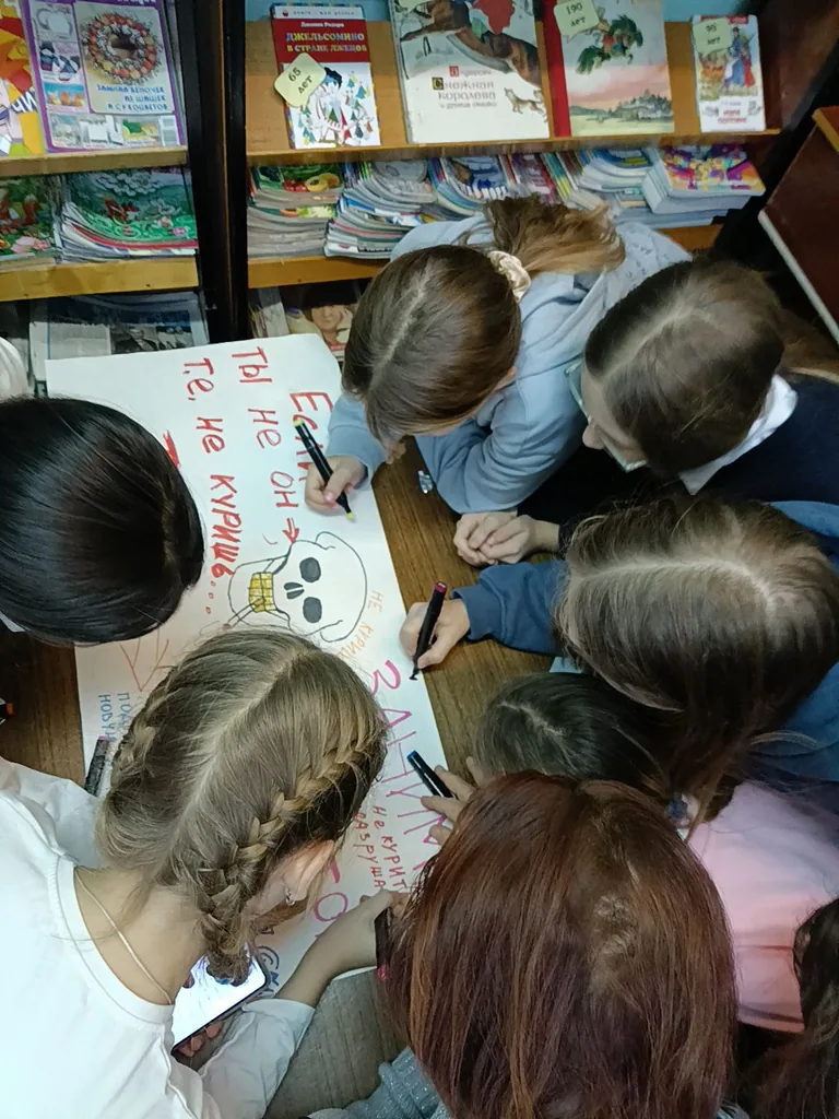 К Международному дню отказа от курения сотрудники библиотеки-филиала №29 провели для воспитанников детского клуба «Факел» старшей группы «Активинка» час здоровья "Я выбираю жизнь без табака!". Библиотекарь детского отдела Секретарева Елена Юрьевна с помощью электронной презентации рассказала подросткам об истории возникновения табака, его распространении и борьбы против его употребления в разных странах и в различные исторические эпохи. Особое внимание было уделено информации о пагубном влиянии сигарет и никотина на организм человека. Чтобы закрепить полученную информацию, присутствующие отвечали на вопросы диспут-викторины "Курить : вредно или полезно?", узнали, как вести здоровый образ жизни, а также приняли участие в игре на ассоциации слова «курильщик» с целью формирования негативного отношения к курению. Дети вставали в круг, по очереди перекидывали мяч и называли любое слово, соответствующее выражению «курильщик –какой?". В завершении ребята нарисовали большой антитабачный плакат.
