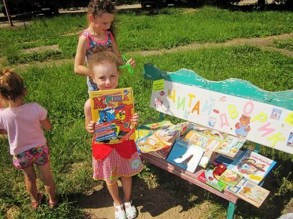 В 2014 года библиотека организовала «Читай-дворик» для детей по адресу: ул. Прохорова, д. 32 А (детская площадка), который успешно работает вот уже пятый год. Сюда ребята с удовольствием приходят, чтобы посмотреть и почитать книги («Стихи и рассказы о природе», «Сказки» Б. Заходера, «Басни» И. Крылова и др.), полистать интересные журналы: «Лунтик», «Мурзилка», «Смешарики», «Тошка», «Там и Джерри», поучаствовать в познавательных викторинах, конкурсах, связанных с книгой, с творчеством детских писателей. Здесь дети дружно разгадывают кроссворды, рассматривают красочные журналы, самые маленькие детки с интересом слушают сказки и стихи известных русских писателей А. Барто, Н. Носова, К. Паустовского, В. Гаршина, играют в активные игры. Так, читая и играя на свежем воздухе, ребята узнают что-то новое для себя, получают дополнительную информацию, развиваются.