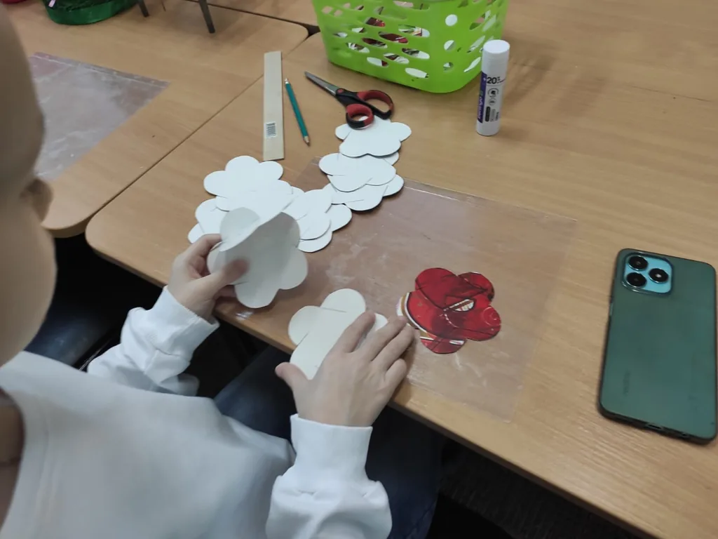 Творческая часть мероприятия была посвящена изготовлению объемного 3Д шара на ёлку. Ребята вырезали детали и собирали их в объемную фигуру. Это занятие потребовало аккуратности и терпения, но все ребята справились с работой на отлично! Мастер-класс очень понравился детям и вдохновил их на создание новых игрушек на ёлку.
