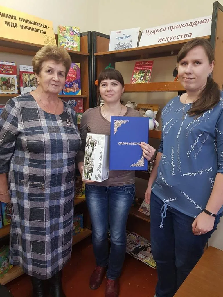 Приятная встреча состоялась с директором Таракановой А. В. и заместителем директора Вилюковой Н. А. , которые поздравили сотрудников библиотеки с юбилеем и одарили подарками.