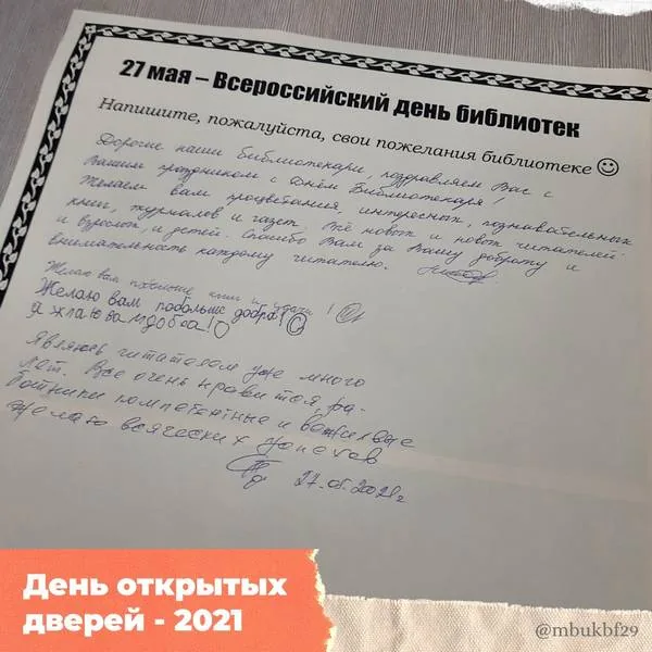 27 мая в Общероссийский день библиотек для всех читателей библиотеки-филиала №29 прошёл День открытых дверей "Открой для себя библиотеку!".