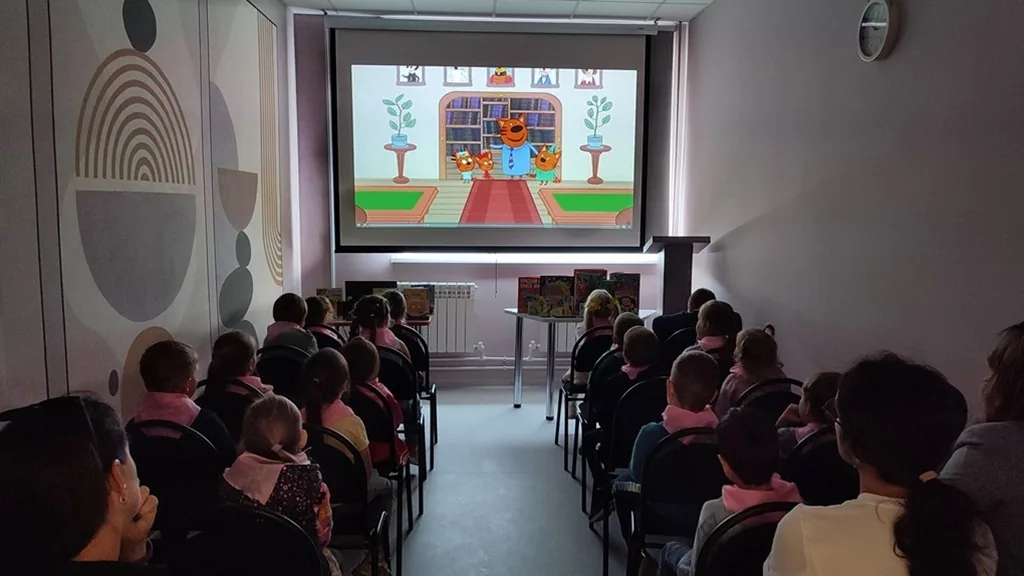 Завершилось мероприятие просмотром мультфильма «Три кота. Библиотека».