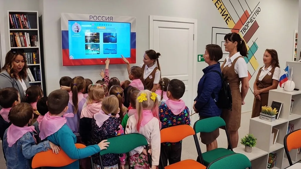 Для ребят группы «Вишенка» была проведена экскурсия «Добро пожаловать в библиотеку». Дети ознакомились с залом актуального библиотечного обслуживания. Библиотекарь рассказала о новинках детской литературы, энциклопедиях, журналах. Далее библиотекарь рассказала ребятам о возможностях интерактивной панели «Подсолнух», в зале творческого развития дети ознакомились с выставками: «Добрых рук мастерство», «Йошкар-Ола – 440», также с интерактивной панелью «Цвета России», с большим удовольствием поучаствовали в познавательных викторинах. В конце экскурсии дети посетили компьютерный класс.