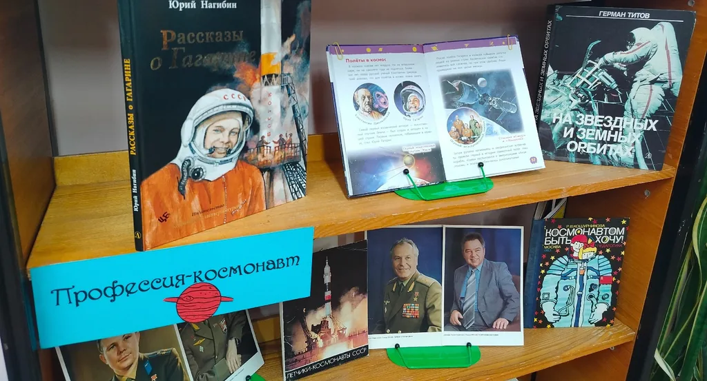 Раздел «Профессия–космонавт» представлен книгами: Нагибин Ю. М. «Рассказы о Гагарине»; Титов Г. С. «На звёздных и земных орбитах»; Кошурникова Р. В. «Космонавтом быть хочу!». Произведения знакомят читателей с яркими событиями истории отечественной космонавтики, с людьми, которые открывали дорогу в космос. «Рассказы о Гагарине» Ю. Нагибина повествуют о детстве и юности Ю. А. Гагарина, о становлении его характера. Воспоминания Героя Советского Союза, летчика–космонавта Г. Титова приоткрывают завесу тайны над самой загадочной профессией –космонавт.