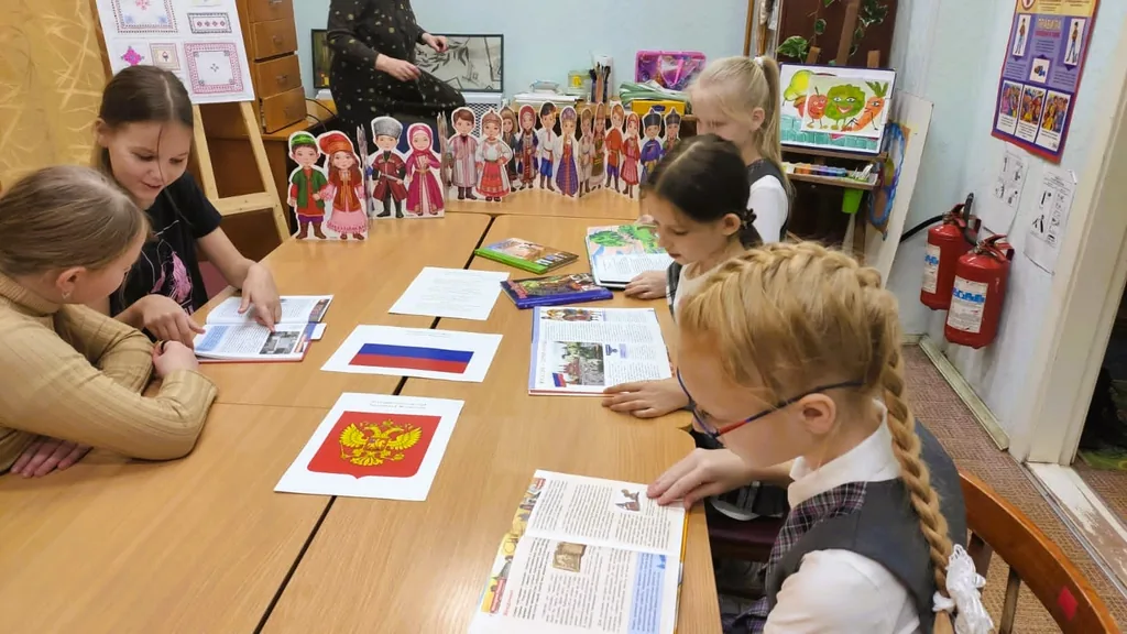 В дополнение к рассказу библиотекарь провела обзор научно-популярных изданий для учащихся по данной теме из фондов библиотеки: С. Ю. Афонькин «Народы России», А. В. Голубев «История России», В. О. Никишин «Россия» и др.