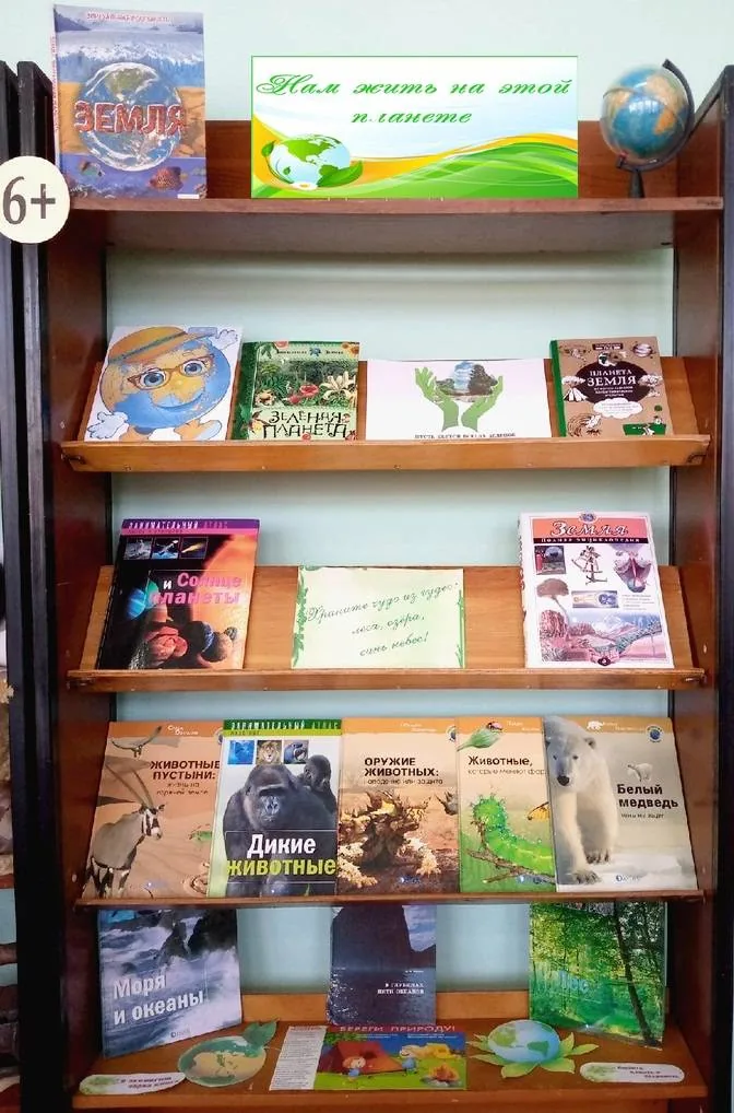В библиотеке-филиале №4 к Всемирному дню Земли подготовлена книжная Эко-выставка «Нам жить на этой планете». Наша планета удивительно красива, необычайно разнообразна и уникальна. Этот день - напоминание всем её жителям о том, что надо беречь и сохранять красоту нашего общего дома. На полках представлена познавательная литература - энциклопедии, справочники, в которых можно узнать, как устроена планета Земля, как образовались горные породы, как произошли океаны, а также о животных и растениях.