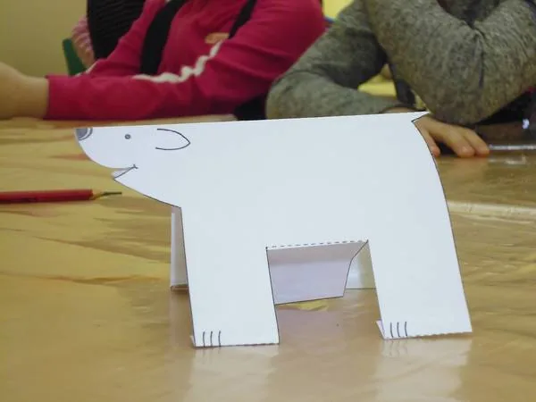 А в конце мероприятия предложили сделать поделку из бумаги «Полярный медведь»