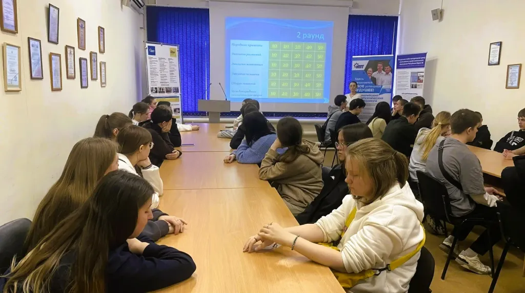 Участники разбились на две команды. Игра состояла из двух этапов. Первый этап – «Своя игра». Каждая команда по очереди выбирала тему («Народные приметы», «Экология животных» и др.) и стоимость вопроса (от 10 до 50 баллов). Жетоны выдавались из расчёта 1 жетон за 10 баллов.