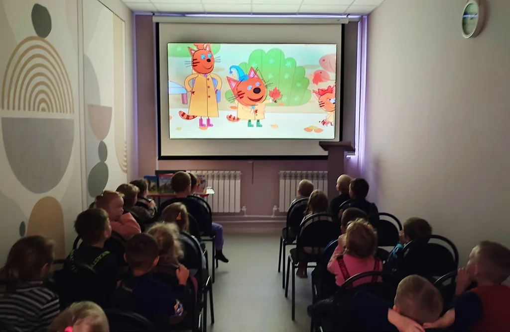В завершении мероприятия детям был продемонстрирован мультфильм из серии «Три кота» под названием «Что такое осень?».