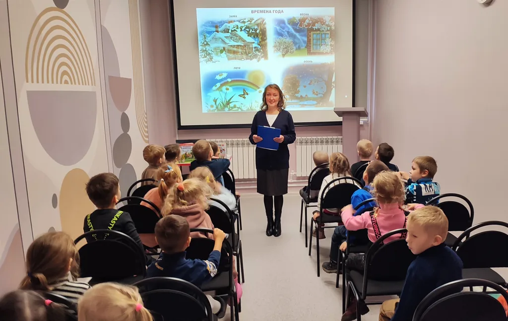 В конференцзале библиотекарь провела с детьми экопутешествие на тему «Люблю тебя, природа, в любое время года!». Прочитала ребятам сказку В.И. Даля «Старик-годовик». Дети активно отвечали на вопросы о временах года и поиграли в игру «Ветер, солнышко и дождик».