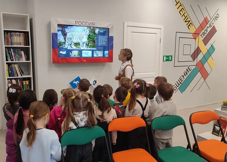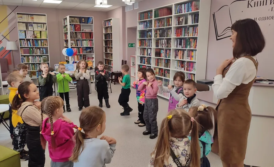 Затем дети принимали участие в музыкальной игре «Как живешь?», решали задачи на логику, тренировали память и мышление на сенсорной панели «Подсолнух», рассматривали многочисленные выставки в залах библиотеки. Также библиотекарь прочитала детям стихи А. Барто, а дети исполнили песню о цветах флага.