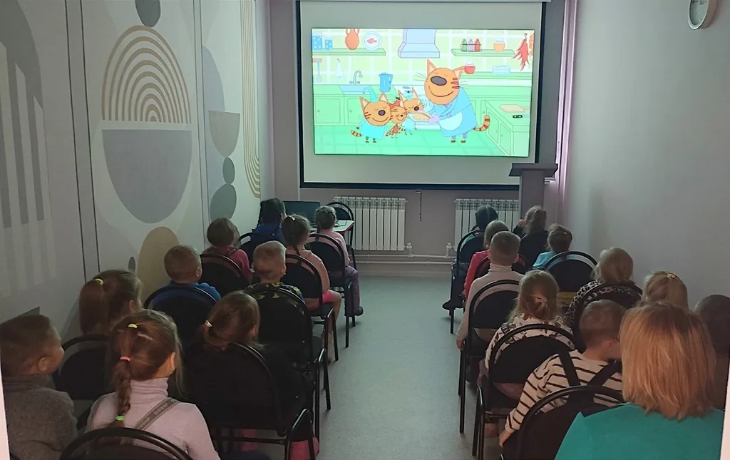 В конференц-зале дошкольники поиграли в игры на внимательность и посмотрели мультфильм.