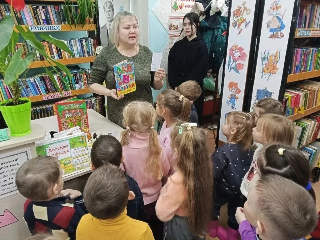 Библиотекарь детской кафедры Секретарева Елена Юрьевна провела экскурсию "В гостях у книжных героев", на которой дети нашли много интересного и познавательного, узнали, какие герои живут в книжках, откуда произошло слово "библиотека", что такое абонемент и читальный зал.
