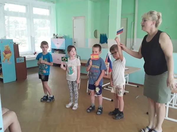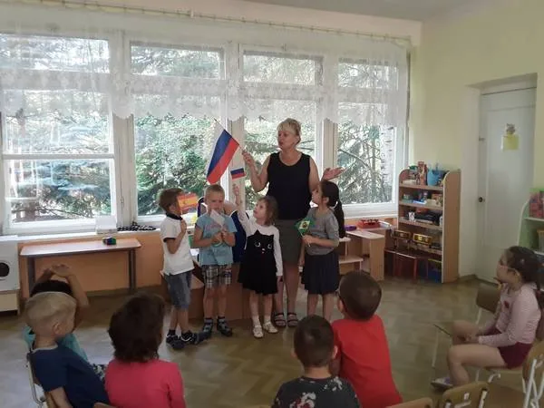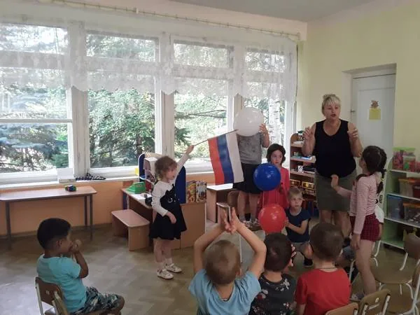 Прослушав песню «Российский флаг» в исполнении В. Матвеевой, дети приняли активное участие в играх «Собери флаг» (из заготовок выкладывали флаг России) и «Найди флаг России» (несколько ребят держали в руках флаги разных стран, остальные дети произносили громко имя ребенка, который поднимал флаг России высоко над головой).