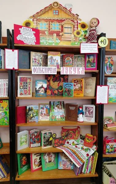 В рамках Года народного искусства и нематериального культурного наследия народов России для детей дошкольного и школьного возраста оформлена выставка «Фольклорная азбука», где представлены литературно-художественные издания, посвящённые устному народному творчеству: «Русские сказки и потешки», «Русские народные песни», «Гой еси вы, добры молодцы: Русское народно-поэтическое творчество», В. С. Бахтин «От былины до считалки», «Былины» и др.