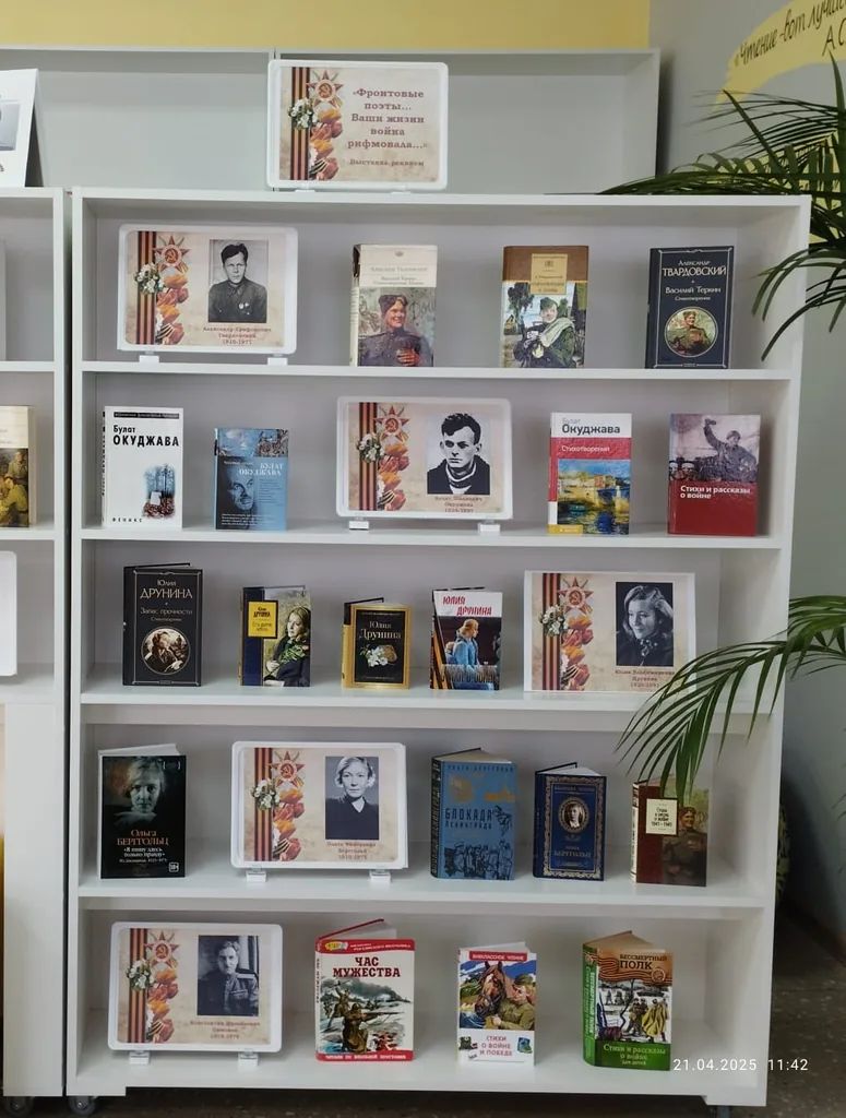 В модельной Центральной детской библиотеке оформлена выставка-реквием «Фронтовые поэты… Ваши жизни война рифмовала», посвященная памяти поэтов-фронтовиков Великой Отечественной войны. Она позволит юному поколению познакомиться с творчеством тех авторов, чьи стихи стали голосом поколения, пережившего войну.