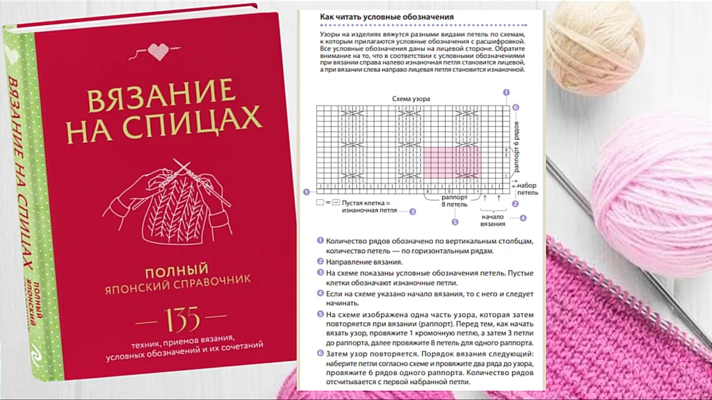 Модельная библиотека-филиал №1 делится отличной новостью со всеми любителями вязания и с теми, кто еще только хочет научиться вязать! В библиотеке появилась новая книга - «Вязание на спицах: полный японский справочник: 135 техник, приемов вязания, условных обозначений и их сочетаний» (12+).