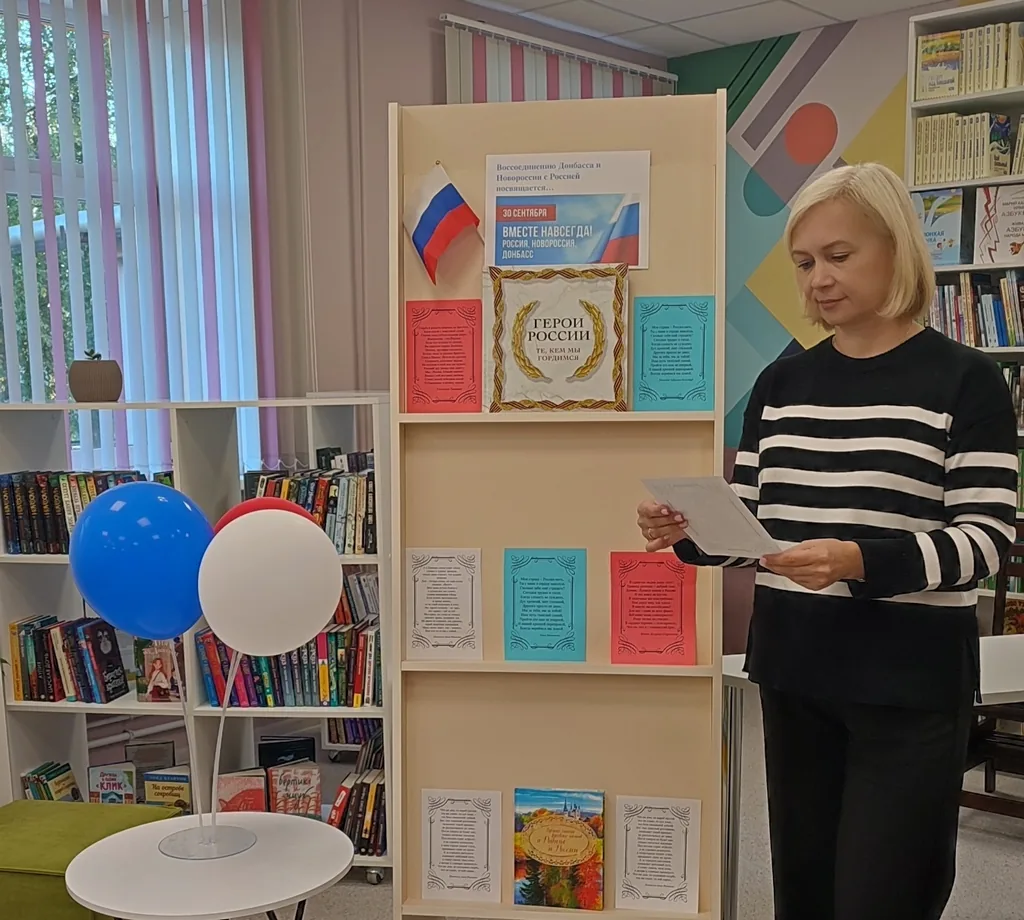 В преддверии этого исторического события и в поддержку памятной даты в модельной библиотеке-филиале №1 прошли Громкие чтения стихотворений современных российских поэтов о Донбассе и России. Это эмоциональные стихотворения Анны Ревякиной, Светланы Тишкиной, Марии Целуйко-Скуратовой, Ольги Бахметовой и других авторов.